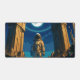 An astronaut standing between towering ancient pillars under a radiant moon suspended in a cosmic sky. The scene blends the mystery of forgotten civilizations with the boundless wonder of space exploration. The lone figure symbolizes humanity’s search for meaning across time and galaxies, standing at the threshold between the ruins of the past and the endless possibilities of the universe.