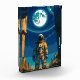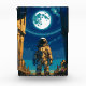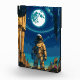 An astronaut standing between towering ancient pillars under a radiant moon suspended in a cosmic sky. The scene blends the mystery of forgotten civilizations with the boundless wonder of space exploration. The lone figure symbolizes humanity’s search for meaning across time and galaxies, standing at the threshold between the ruins of the past and the endless possibilities of the universe.