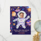 This design features an astronaut floating in space surrounded by planets, the sun, a UFO, galaxies and lots of stars on a dark purple background. In the astronauts helmet is a spot for you to add your own photo. it is ideal for a space themed birthday. You can customise the message and the name. On the back of the card is a matching galaxy pattern. See the whole matching collection.