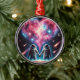 Celebrate the season with a touch of cosmic romance with this astronaut love ornament. Featuring two astronauts holding hands beneath a breathtaking heart-shaped nebula, this design combines the magic of space exploration with the warmth of human connection. The vivid colours of the galaxy, with hues of pink, blue, and purple, create a striking contrast against the infinite black of the universe, making it a standout addition to your holiday decor.