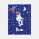 Astronaut Night Sky Moon Star Rocket Fleece Blanket