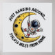 Take your space decor to new heights with this whimsical poster. Featuring a lone astronaut casually dangling from the top of a crescent moon, his feet perched on its glowing curve, waving back at Earth with a cheeky message “Just Hanging Around... 238,855 Miles from Home”. A perfect addition to any space lover’s collection. Ideal for bedrooms, offices, or as a gift for dreamers and explorers alike, this poster is a reminder that adventure is always just one step into the unknown.