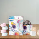 Featuring a cute astronaut floating among colorful planets, stars, and a magical galaxy background, this gift wrap is perfect for space-themed birthday parties.
