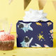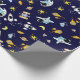 Astronaut theme cartoon in space with repeating images of astronauts, moons, planets with rings, satellites, oxygen canisters, stars, lightning bolts, asteroids and rocketships.