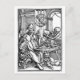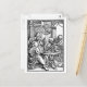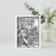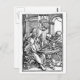 Astronomer Postcards. Old black and white woodcut illustration of astronomer at a table with skeleton holding skull to one side.