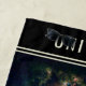 A bright astronomy design which has customizable text top and bottom. The default text reads "UNIVERSE" and "INFINITY". The image was captured by NASA's Spitzer Space Telescope and shows the Large Magellanic Cloud, a dwarf galaxy located about 160,000 light years from Earth and orbiting our own Milky Way galaxy. The blue colour represents starlight from older stars, and the reddish colour is from dust heated by stars. [Image credit: NASA/JPL-Caltech/STScI]