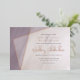 This geometric style wedding invitation is simple but elegant with muted plum / grey colour theme with calligraphic elements, asymmetric frame and custom text accents in real rose gold foil, and a marble texture appearance - by katz_d_zynes