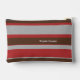 Three-color design with asymmetric stripes. Horizontal lines in three colors for your accessory pouch. Add your name or text on front and back. This variant is the festive color scheme in gray, red and brown.