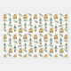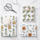 This pretty gift wrapping sheet set features a watercolor hygge theme, with three separate patterns in tones of blue green, blue, brown, and orange. One pattern is of a village house with Holiday trees. One pattern is bright orange flowers with blue green leaves. And the third pattern is coordinating orange berry Holly sprig with leaves. All patterns are placed on a white background. This set of papers coordinates nicely with A Hygge Christmas set of papers in our store. Mix and match!
