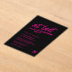 Modern wedding acrylic invitation featuring a simple design with "at last" in a handwritten brush script typography along with a hand drawn heart in the lower right corner. The colour palette is vibrant hot pink over a black background and may be changed in the design editing tool. The simplicity of the layout adds an elegant touch to this modern wedding invitation.