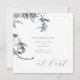 This chic design features a modern watercolor sprig of blue floral greenery and custom calligraphy.