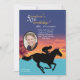 Make it a special occasion by inviting guests with this unique invitation. The beautiful background features a horse and jockey silhouette racing across the card. Just add your favourite photo to make it yours. The card is easy to customize with your wording, font, font colour and choice of six paper types.