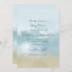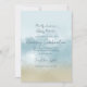 This watercolor beach wedding invitation card / details card features the abstract portrayal of an ocean shoreline with waves rolling onto a sandy beach - mixed fonts text is a coordinating blue - personalize the wedding ceremony details on the front of the card; additional descriptive details are on the back of the card - easily add a website QR code using Zazzle's Design Tool - by katz_d_zynes