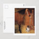 A fine art postcard with the painting, At the Stables, Horse and Dog (1861), by the French artist Edgar Degas (1834-1917). A portrait of a chestnut horse and a white boxer dog in a stable stall.
