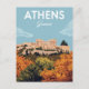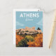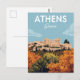Celebrate the ancient wonders of Athens, Greece, with this vibrant vintage-style postcard. The design features the majestic Acropolis and the Parthenon towering over the city, surrounded by rich, colorful foliage suggesting autumn. This travel poster artwork is perfect for history lovers, travelers to Greece, and anyone who appreciates classic Mediterranean scenes. Ideal for sending greetings, keeping as a keepsake, or framing as sophisticated wall art.