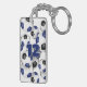 This fun soccer themed keychain features the image of a bunch of varied size blue, black and white soccer balls and can be personalized with the athlete's name on the front and jersey number or monogram on the back - by katz_d_zynes