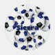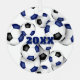 This fun soccer themed ornament is printed on the front and back with the image of a cluster of varied size blue, black and white soccer balls - customize with the athlete's name on the front and commemorative year on the back - by katz_d_zynes
