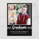 This sporty graduation announcement postcard features a 4-photo layout and fun athletic design. On the front of the black and white announcement, choose four of your favourite photos for the template -- three smaller photos and one large vertical photo. Add the graduate's name, graduation year, and school to the bottom. On the back of the graduation postcard, you can add a custom message to recipients and grad party details.