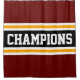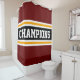 This sporty, athletic design features bold CHAMPIONS text inside a highlighted wide black stripe with double white and yellow racing stripes against bold red outer stripes. The text in this design can be personalized.