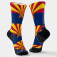Crafted with meticulous attention to detail, these socks are more than just sportswear; they're a celebration of Arizona's rich history and cultural heritage. The design proudly showcases the bold red and yellow rays with the copper star from the Arizona flag, symbolizing the state's vibrant landscapes and pioneering spirit.