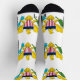 Crafted with attention to detail, these socks proudly display the vibrant blue, white, and green flag of the Virgin Islands, adorned with a yellow anchor and letters "V" and "I". This design symbolizes the territory's maritime heritage and connection to the Caribbean Sea.