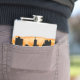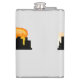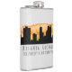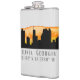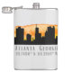 Vinyl wrapped flask design features Atlanta Georgia city skyline silhouette with sunset watercolor splash  and latitude & longitude map coordinates