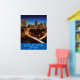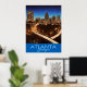 Poster in an illustration of the Atlanta Georgia skyline against a starry sky, with illuminated golden ribbons of traffic