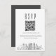 A minimal wedding rsvp QR code card featuring a stylized skyline representing the city of Atlanta. Replace the QR code with one featuring a link to your website to help make responding to your wedding event easier for your future guests.