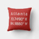 Latitude and longitude coordinates for Atlanta, GA in modern white industrial font on red background.