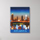 Canvas in an illustration of the Atlanta Georgia skyline at night, under a starry sky, with brilliantly reflected lights