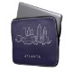This design features a hand drawn sketch of the Atlanta skyline on a purple background.