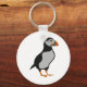 A cute Atlantic Puffin standing illustrated from the side view. The head of this pretty bird is turn to show off its beak marking.