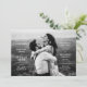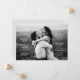Invite your guests to celebrate with you on the big day and show off that amazing engagement photograph all at once with this horizontal landscape layout wedding invitation. White text stands out against lighter photographs but can be changed to black using the customizer. A simple backer of the colour of your choice rounds out the clean and elegant look of this invitation.