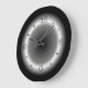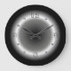 An atmospheric clock in Black with a white halo effect and grey centre .Geometric Black numerals complete this stunning clock design. Available in round and square shapes.