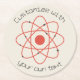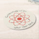 Custom round beer mats with curved text and atom structure, ideal for any science themed event.