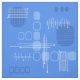 A mid century modern abstract art design that would have fit right in during the 1950s. Various shapes of oval circles and lines in true blue.
