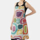 This mid century modern abstract art has geometric designs popular in the 1950s, with wonky rocks in various shapes and sizes. Bright and colourful rainbow colours.
