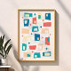 Atomic Age Mid Century Modern Blocks Blue Peach Poster
