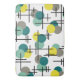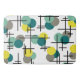 A retro atomic era inspired pattern with teal, turquoise, grey and yellow molecule circles, along with mid century modern styled bold lines.