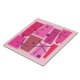This 1950s midcentury modern vintage abstract art has wonky geometric rectangles with lines that make sputnik starbursts. Colours are shades of flamingo pink, red, and magenta.