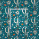 My original vector illustration of a stylized space scene, inspired by the atomic fifties and sixties, in teal, dark orange, antique white, and minty aqua, with a variety of textures. ©Christine Duffield 2022