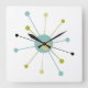 Atomic Age Starburst Mid Century Modern Square Wall Clock