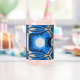 Retro mid century atomic blue art design.