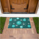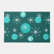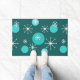 A mid century modern inspired space age 1950s pattern with geometric sputnik starbursts. The colour palette is teal green and turquoise blue