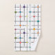 This towel set has a mid-century modern design of an atomic grid with circles in retro colours. Want a different colour? Message me.