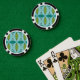 Oh, gee! It’s Atomic Ogee and Starbursts Poker Chips! It’s a modern take on a classic pattern (a mid century modern take, to be exact). This design features an aqua background with teal and green oval shapes overlaying black, vertical lines of atomic diamonds and starbursts. This mod product brings everything that was good and virtuous about the 60s into modern day. What? Was that laying it on a little thick? Well, it is a vintage inspired thing of beauty.