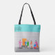 You are invited to the social event of the year with this Atomic Palm Springs Stewardess Party tote design. Join these three vintage flight attendants from rivaling airlines as they check into their kitschy 1960s breezy block hotel. One of the fabulously hunky bellhops in a retro hot pink uniform holds the orange door while the other struggles with the women's luggage. Teal palm trees sway in the background of the impossibly turquoise sky as a jetliner flies overhead. This design will have you saying, “On your mark, jet set, go!”