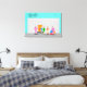 You are invited to the social event of the year with this Atomic Palm Springs Stewardess Party stretched canvas print design. Join these three vintage flight attendants from rivaling airlines as they check into their kitschy 1960s breezy block hotel. One of the fabulously hunky bellhops in a retro hot pink uniform holds the orange door while the other struggles with the women's luggage. Teal palm trees sway in the background of the impossibly turquoise sky as a jetliner flies overhead. This design will have you saying, “On your mark, jet set, go!”