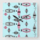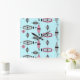 This retro Atomic Pink and Grey Pattern Square Acrylic Clock is so awesome it will have you saying, “I can’t believe it’s not barkcloth!” The vintage inspired design is a new take on mid century modern styles. It offers all of the fun of finding a vintage product without having to schlep through antique stores and flea markets. Just when you think it can’t get more perfect, you learn that this whimsical design with its kitschy off kilter shapes in colours of pink, charcoal grey, black, and light grey even offers the option of customizing the background colour. We’ve put it on a lovely shade of aqua, but a quick change of the background colour, and… Presto! Change-o! The product has gone from subdued to daring! There are dots, starbursts, and diamonds in this piece of modern art. This homage to the 1950s will thrill your retro loving soul.