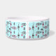 This retro Atomic Pink and Grey Pattern Ceramic Pet Bowl is so awesome it will have you saying, “I can’t believe it’s not barkcloth!” The vintage inspired design is a new take on mid century modern styles. It offers all of the fun of finding a vintage product without having to schlep through antique stores and flea markets. Just when you think it can’t get more perfect, you learn that this whimsical design with its kitschy off kilter shapes in colours of pink, charcoal grey, black, and light grey even offers the option of customizing the background colour. We’ve put it on a lovely shade of aqua, but a quick change of the background colour, and… Presto! Change-o! The product has gone from subdued to daring! There are dots, starbursts, and diamonds in this piece of modern art. This homage to the 1950s will thrill your retro loving soul.